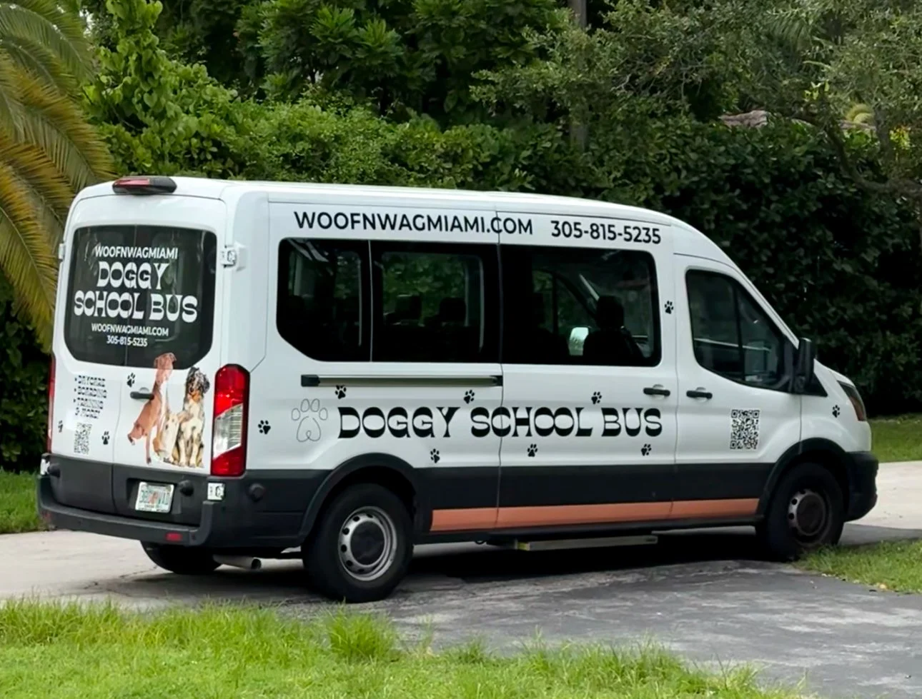 The Woof N Wag School Bus offers safe, reliable, and stress-free transportation for your pup. Our air-conditioned bus is fully equipped for comfort and safety, with secured seating, and a trained driver who treats every dog like their own. Whether itβs morning pick-up or afternoon drop-off, we make getting to daycare the best part of their day.